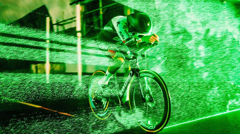Raggi laser verdi fendono l'oscurità, rivelando il vero flusso dell'aria. Red Bull – BORA – hansgrohe, insieme a Specialized e LaVision, stanno portando i test aerodinamici a un nuovo livello. Sembra fantascienza, ma è ricerca all'avanguardia: nel Catesby Aero Research...