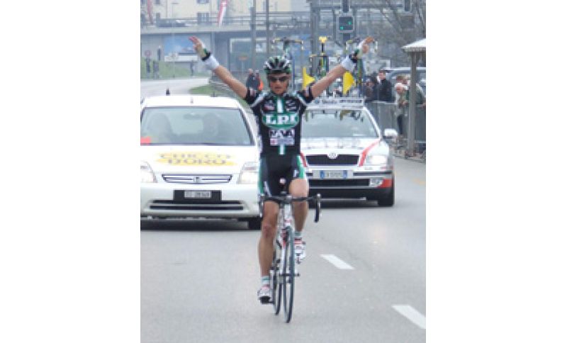 Prima vittoria stagionale per il Team Lpr al Giro del Mendrisiotto. Grazie ad una potente azione negli ultimi 25 chilometri di gara, Andreas Dietziker ha tagliato solitario il traguardo di Mendrisio, staccando di 37” il compagno di squadra Luca Solari, ottimo secondo davanti agli altri fuggitivi Emanuele Bindi e Pasquale Muto, portando così a tre il numero di successi consecutivi della formazione nero-verde nella gara ticinese. Sono stati proprio i ragazzi del Team Lpr ad animare la corsa fin dalle prime battute. Dopo un tira e molla durato un centinaio di chilometri, che ha visto Luca Solari e Alessandro Maserati tra i più attivi, la prima importante azione di giornata è partita al chilometro 100. Ad avvantaggiarsi sul gruppo è stato infatti un plotoncino di 25 unità, tra cui i nero-verdi Dietziker, Maserati, Beuchat e Solari. A meno trenta dalla conclusione Niemiec, Clarke, Chiarini (rientrato nel frattempo sui battistrada), Sinicinas e Wyss rompono gli indugi, guadagnando un leggero margine sul gruppetto al comando. Ma a riprendere i sei si è portato direttamente Andreas Dietziker, che una volta raggiunta la testa della corsa è ripartito in contropiede piazzando l'allungo vincente. Alle sue spalle Solari, dopo aver raggiunto i cinque rimasti alle spalle di Dietziker, ha controllato magistralmente la corsa, evitando così che qualsiasi azione potesse impensierire il compagno in fuga, bravo a scollinare con un buon margine di vantaggio sull'ultima salita, ed a buttarsi a capofitto sull'arrivo di Mendrisio. Nella volata per il secondo posto Luca Solari ha confermato l'ottimo momento di forma, superando senza problemi Bindi e Muto. A completare la straordinaria prestazione del Team Lpr anche il decimo posto di Alessandro Maserati e l'undicesimo di Riccardo Chiarini. “Sono contento per me, gli sponsor e la squadra – afferma Andreas Dietziker -, perché oggi eravamo in grande forma e lo abbiamo dimostrato con una corsa perfetta. Da parte mia ho cercato di dare il massimo negli ultimi chilometri, e quando ho capito che le energie me lo permettevano ho tentato la fuga. Solari alle mie spalle ha fatto un ottimo lavoro di copertura, mentre io credo di aver fatto una buona azione scollinando sull'ultima salita con ancora un buon margine di vantaggio”. Felice anche Luca Solari: “Siamo una squadra molto unita, e mi fa piacere che stavolta sia andata bene ad Andreas Dietziker – dice -. E' stato bravo a cogliere l'attimo giusto, ed a resistere quando alle spalle gli inseguitori hanno aumentato la velocità. Io e gli altri compagni abbiamo cercato di coprire la sua azione, facendo così un buon lavoro di squadra“. Ordine d'arrivo: 1) Andreas Dietziker (Team Lpr) copre i 151, 2 km in 3'32”45 alla media di 42,642 km/h; 2) Luca Solari (Team Lpr) a 37”; 3) Emanuele Bindi (Universal Café – Ecopetrol) st; 4) Pasquale Muto (Miche) st; 5) Emanuele Rizza (Aurum Hotels) a 43”.