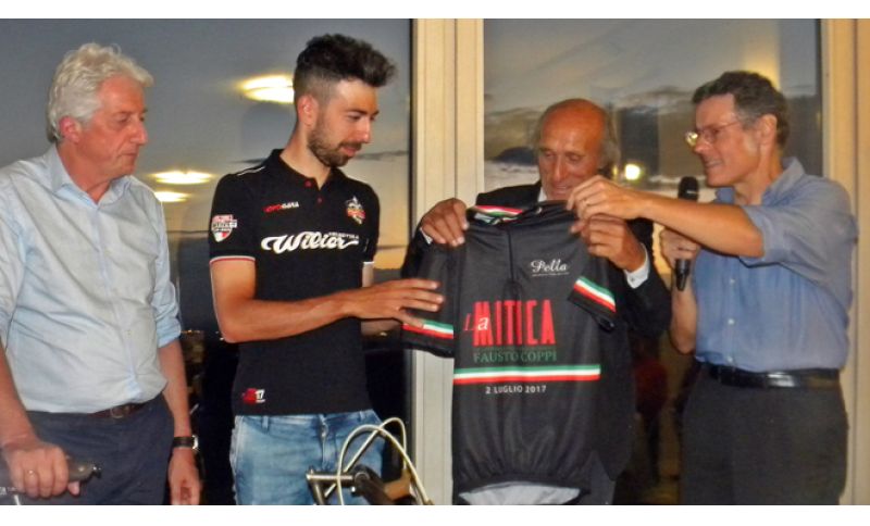 Il sabato mattina, 1° Luglio, l’apertura dell’ormai tradizionale “mostra mercato di bici e accessori d’epoca” ha dato l’avvio vero e proprio all’evento “ciclostorico” dedicato a Serse e Fausto Coppi e al ricordo della prima corsa agonistica disputata da un giovanissimo Fausto nel 1937, proprio 80 anni prima nei colli tortonesi. La sorpresa della mattinata è stata la visita al villaggio de LaMITICA di Francesco Moser che, con alcuni amici, ha voluto percorrere in bici alcune strade dei Colli di Coppi per terminare poi il suo giro a Castellania per un ristoro conviviale presso il Ristorante Grande Airone. Ma da segnalare che già il giorno prima un certo Beppe Saronni ha voluto far sosta e visita al museo di Casa Coppi di Castellania, questo a confermare che a Castellania prima o poi hai la certezza di incontrare un mito del ciclismo di ieri, di oggi e di domani. Ed infatti, durante la “Cena dei Campioni” presso la Residenza il Borgo di Castellania, dopo aver omaggiato l’alessandrino Giorgio Zancanaro, vincitore proprio ad Alessandria della 1° tappa del Giro d’Italia del 1967 e quindi prima maglia rosa di quel Giro di 50 anni prima, il Comitato Colli di Coppi, ha voluto premiare (prima edizione di un premio che da quest’anno sarà un appuntamento fisso) il corridore professionista Giuseppe Fonzi, portacolori del Team Wilier Triestina-Selle Italia e che ha terminato il Giro d’Italia 2017 in ultima posizione, con una simbolica “maglia nera” de LaMITICA per ricordare la figura del corridore tortonese Luigi Malabrocca che con le sue imprese ha contribuito a rendere così mitica quella maglia.