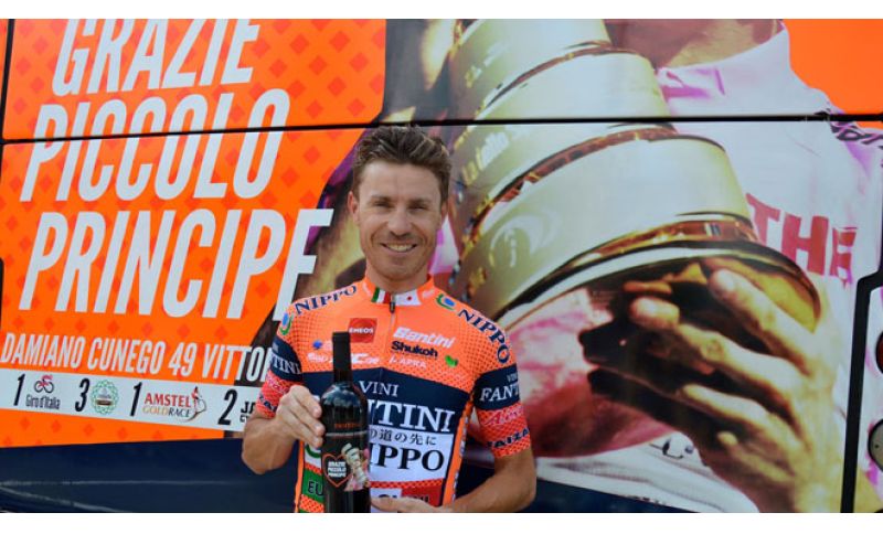 Il Tour de Suisse, l’ultimo grande appuntamento World Tour di Damiano Cunego, è alle porte. Per celebrare al meglio la sua grande carriera tra le tante iniziative spicca la bellissima dedica realizzata da Vini Fantini. L’azienda abruzzese, legata al Piccolo Principe sia in questi recenti anni con il team NIPPO Vini Fantini Europa Ovini