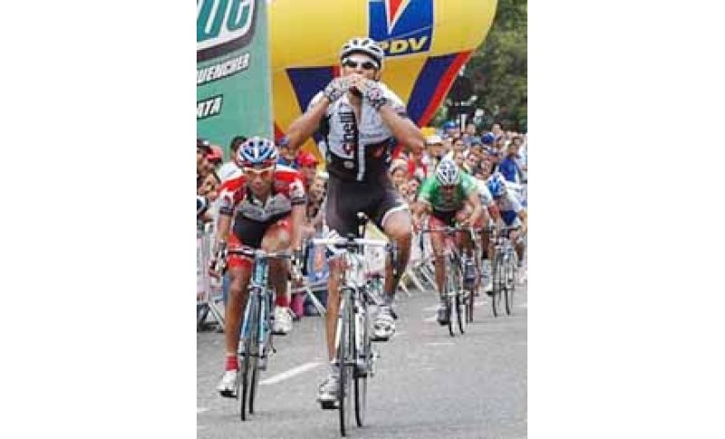 Si fa sempre più ricco il bottino della Cinelli Endeka OPD sulle strade della Vuelta a Venezuela. Dopo lo splendido successo conseguito nella prima tappa, nella prova contro il tempo, Juan Pablo Dotti concede il bis sul traguardo di Valera, nella undicesima frazione con partenza da Santa Elena De Arenales. Il corridore argentino ha battuto allo sprint il venezuelano Richard Ochoa, secondo nella classifica a tempi. A completare l’ottima giornata del team diretto da Simone Biasci, il 9° posto conseguito da Ivan Fanelli, grazie ad una bella volata che lo ha visto primeggiare su un gruppetto di 15 atleti, giunti al traguardo con un distacco di 1’24” dal vincitore. Grazie a questa affermazione Dotti, che era stato leader della generale per otto tappe, risale la classifica posizionandosi alla settima posizione, a 1’26” dal leader, il colombiano Cesar Salazar (Col). Ordine d’arrivo 1 Juan Dotti (Arg) in 4.02’08” 2 Richard Ochoa (Ven) s.t. 3 Cesar Salazar (Col) a 2” 4 Tomás Gil (Ven) s.t. 5 Jose Serpa (Col) s.t. 6 Ronald Gonzalez (Ven) a 4” 7 Jaime Rivas (Ven) a 1’16” 8 Raúl Saavedra (Ven) a 1’18” 9 Ivan Fanelli (Ita) a 1’24” 10 Carlos Becerra (Col) s.t. CLASSIFICA GENERALE: 1 Cesar Salazar (Col) in 37.27’35 2 Richard Ochoa (Ven) a 40” 3 Jose Serpa (Col) a 56” 4 Tomás Gil (Ven) a 57” 5 Ronald Gonzalez (Ven) a 1’13” 6 Francisco Colorado (Col) a 1’15” 7 Juan Dotti (Arg) a 1’26” 8 José Chacón (Ven) a 2’00” 9 Andris Hernandez (Ven) a 2’21” 10 Jimmy Briceño (Ven) a 2’34”