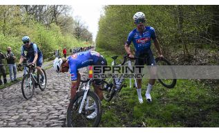 C’è un’immagine che a lungo resterà impressa più di altre: Mathieu Van der Poel che cammina a piedi, contromano, nella Foresta di Arenberg, luogo cult della Parigi-Roubaix. La bici al fianco, lo sguardo incredulo e attorno a lui il caos....