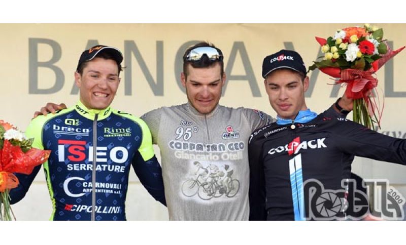 Emanuele Pizzo, romano di Acilia che proprio oggi compie 24 anni del team VPM Porto S.Elpidio, ha vinto per distacco la 95sima edizione della Coppa San Geo gara di apertura del calendario italiano dei dilettanti, con partenza e arrivo a Prevalle. Il vincitore ha preceduto di 32" Filippo Rocchetti, del Team Colpack, e di 35" Samuele Zambelli (Iseo Serrature Rime) che a sua volta ha regolato il gruppo con Yuri Colonna in quarta posizione.