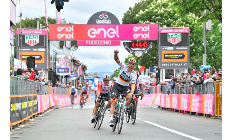 Sventola la bandiera tedesca sul primo arrivo in volata del Giro 102. Pascal Ackermann ha conquistato lo sprint di Fucecchio anticipando sulla linea bianca Elia Viviani. Il campione tedesco della Bora Hansgrohe ha regolato il veronese in maglia tricolore, l'australiano Caleb Ewan e Fernando Gaviria, aggiudicandosi la seconda tappa della corsa rosa. Quinto ha chiuso Arnaud Démare che ha visto cadere il compagno Olivier Le Gac, che ha toccato e compromesso la volata di Davide Cimolai, che deve accontentarsi del sesto posto. Nei dieci anche Kristian Sbaragli, che correva sulle strade di casa.