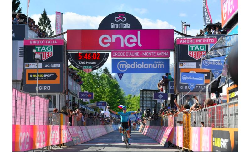 Pello Bilbao firma la doppietta e dopo L'Aquila conquista il Monte Avena. Vincenzo Nibali ha tentato in tutti i modi di mettere in difficoltà Richard Carapaz che non ha ceduto un metro ben spalleggiato da Mikel Landa. Primoz Roglic ha pagato sull'ultima salita mentre Miguel Angel Lopez ha vinto l'Oscar della sfortuna, buttato a terra da un tifoso sloveno che poi è stato preso a sberle dal colombiano.