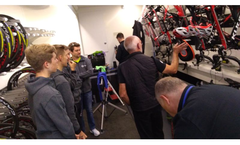 Damiani, che è anche uno dei Tutor del progetto “Atleta oggi, Dirigente domani”, ha vestito i panni di cicerone durante la giornata illustrando alla rappresentativa degli Atleti della nostra Società come funziona un team di ciclismo professionistico.