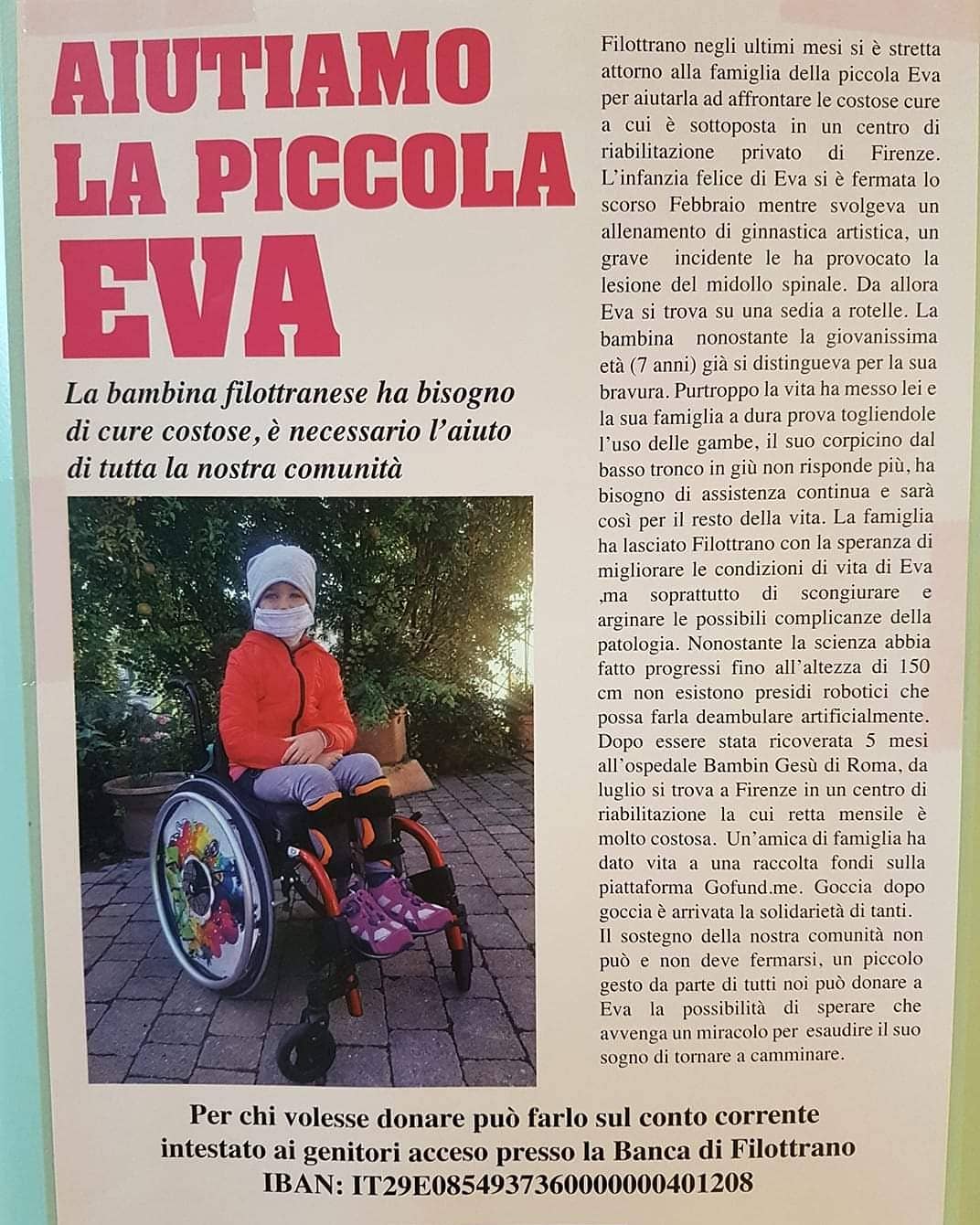 Per sostenere Eva, che a soli 7 anni si è ritrovata su una sedia a rotelle a causa della lesione del midollo spinale causatagli dalla caduta di un materasso mentre stava praticando ginnastica artistica nella palestra del paese (la stessa in cui Michelle è cresciuta tra ruote, spaccate, verticali, rondate) il fratello minore di Vincenzo ha messo in palio la sua casacca autografata con il numero dorsale 197.