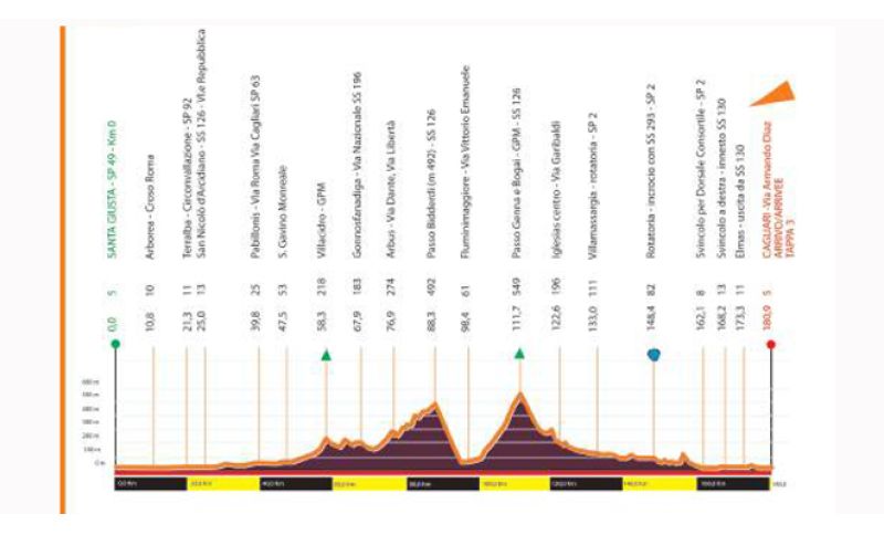 Dopo la volata vincente di Pascal Ackermann ieri a Oristano, la Settimana Ciclistica Italiana Sulle Strade della Sardegna riparte dalla centrale Via Eleonora di Arborea ad Oristano per la terza tappa (partenza ore 11,00), che in 180,9 km porterà la corsa a Cagliari (arrivo previsto tra le 15,00 e le 15,30), per il primo dei 3 arrivi previsti nel capoluogo della Sardegna.