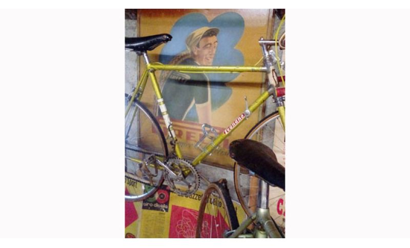 Fra bici nuove (poche, in questo periodo in cui i cinesi si sono accaparrati le materie prime e ora dettano le regole del mercato centellinando i pezzi e triplicando i prezzi) e bici vecchie, Renato trascorre giornate rotonde, radiose, raggianti. Le bici – anche di questo sono quasi certo – si confessano, si confidano, si raccontano, e Renato le prepara a una nuova vita. Per le più giovani c’è ancora tanta strada da fare, per le meno giovani, volendo, c’è la possibilità di rimanere lì da lui a soggiornare, abitare, ricordare, tramandare, vivere. Tutte insieme. Bici d’acciaio e di carbonio, bici da strada e da pista, bici di campioni e di gregari. Bici. E poi anche maglie e marchi, borracce e manifesti, giornali e coppe. Un mondo, il mondo delle bici e il mondo del ciclismo, che poi è lo stesso mondo, un mondo a pedali. Il fantastico mondo di Renato Bulfon.