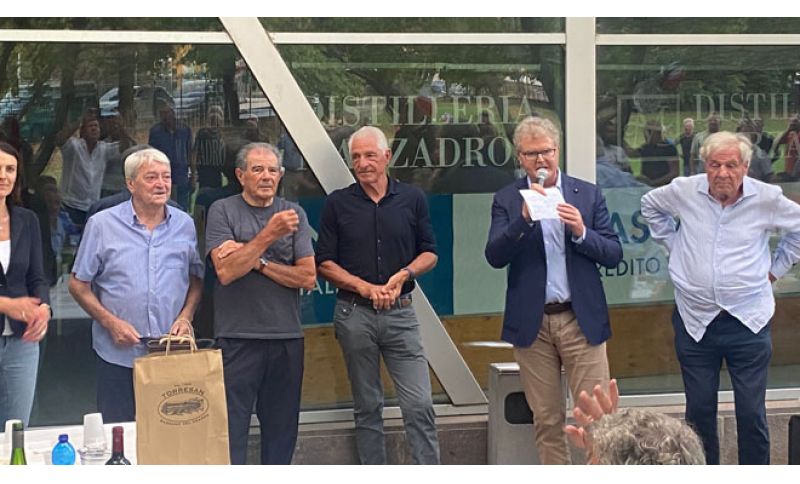 È stata festa grande ieri a Trento per gli 80 anni di Bepi Zoccante, il "signor Bolghera". Tanti amici hanno voluto essere presenti al tagli della torta e al brindisi con Bepi, a cominciare da Francesco e Diego Moser, poi Dino Zandegù, Gibo Simoni, Michele Dancelli, Marcello Osler, Giacomo Santini, Giuseppe Bigolin di Selle Italia, il Governatore del Trentino Maurizio Fugatti, la presidente di CONI Trentino Paola Mora.