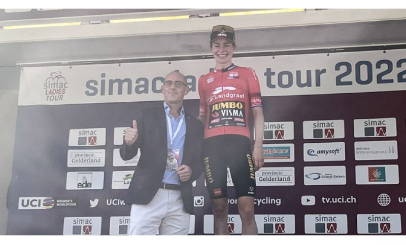 Ancora Olanda nella quarta tappa del Simac ladies Tour ma ad alzare le bracca nella quarta tappa è Rejanne Markus. La portacolori della Jumbo Visma ha anticipato tutte sul traguardo della Landgraaf-Landgraaf di 135. Al secondo posto la sua connazionale Lorena Wiebes (Team DSM) e al terzo Karlijn Swinkels, lei pure olandese e lei pure della Jumbo Visma. Al quarto posto Laura Tomasi (UAE ADQ), al quinto Ilaria Sanguineti (Valcar Travel&Service), al settimo la sua compagna sdi squadra Eleonora Camilal Gasparrini, all’ottavo Soraya Paladin della Canion SRAM.