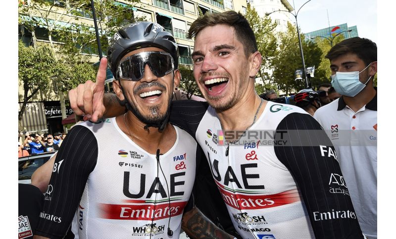 Una bella fotografia di tutto ciò è stata la volata di Saragozza che, sul Paseo de Maria Agustin, ha visto trionfare Juan Sebastian Molano nella 12^ tappa della Vuelta a España. Apparentemente dal nulla, dal ventre del gruppo-sprinter, sono usciti fuori Rui Oliveira e Molano, e per gli altri, complice un problema a un pedale per Kaden Groves, non c'è stato niente da fare. «Sono contentissimo! - esordisce il vincitore di giornata nell'intervista ufficiale - Questa mia seconda vittoria alla Vuelta (si era aggiudicato la passerella finale di Madrid l'anno scorso, ndr) è per la squadra e per la mia famiglia. L'Alpecin Deceuninck è molto forte e sta lavorando perfettamente per la maglia verde di Groves (l'australiano ha ben 110 punti di vantaggio sul colombiano, ndr) mentre noi della UAE abbiamo da curare la generale. A tal proposito, oltre a Oliveira oggi è stato perfetto pure Marc Soler nelle fasi preparatorie della volata. Tutto è andato secondo i nostro piani di giornata. Sono felice per i tanti colombiani che mi stanno seguendo ala Vuelta, mi acclamano ogni giorno e oggi ho potuto dar loro una bella soddisfazione.»