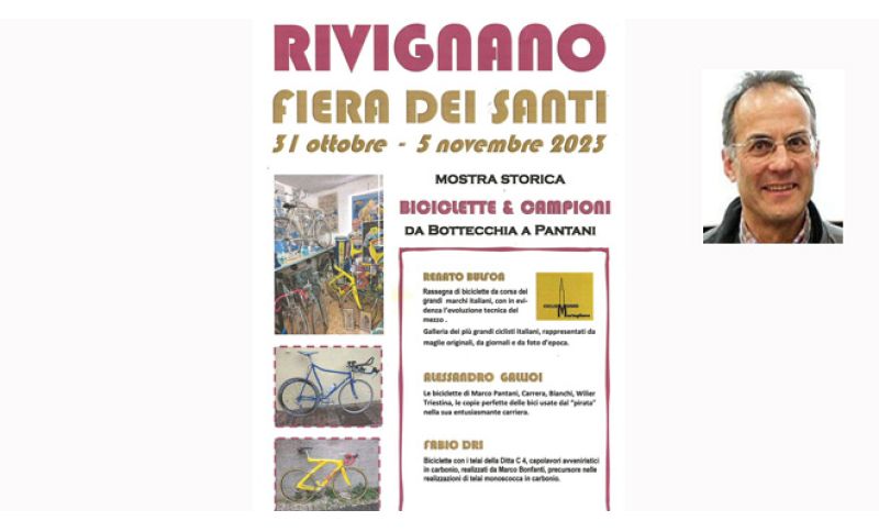 Da oggi al 5 novembre la Fiera dei santi a Rivignano (Udine) ospita un’esposizione di biciclette con alcuni straordinari esemplari delle collezioni di Renato Bulfon, Alessandro Gallici e Fabio Dri. Le biciclette di Bulfon sono quelle storiche, dalla Legnano SC 1932 alla Bianchi Bovet 1935, dalla Diana Simplex TdF 1950 circa alla Colner (Colnago Ernesto) SuperRecord 1984. Le biciclette di Gallici sono le riproduzioni perfette delle Carrera, Bianchi e Wilier Triestina usate da Marco Pantani. E le biciclette di Dri sono modelli avveniristici in monoscocche di carbonio.