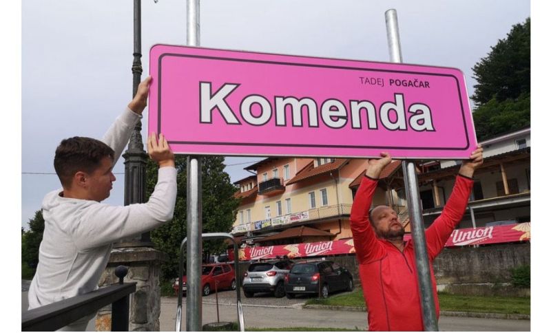Quando tornerà a casa, Tadej Pogacar troverà una Slovenia tutta rosa! I cartelli stradali di Komenda e di Klanec, dove il campione sloveno è nato e cresciuto, sono stati colorati di rosa in omaggio all'impresa straordinaria del ragazzo che ha dominato il Giro d'Italia.
