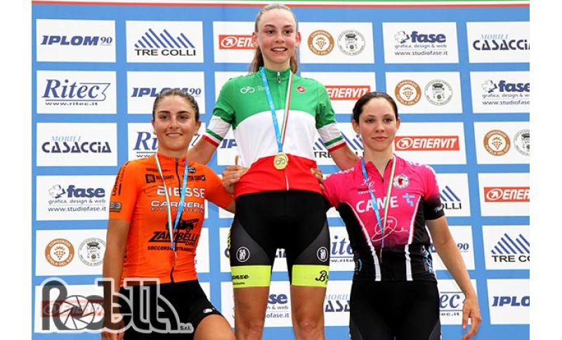Come era facilmente pronosticabile, la salita è stata il giudice supremo della prova e ha fatto si che la corsa esplodesse nel vero senso del termine. In avanscoperta si è così trovato un terzetto formato da Giada Silo, Silvia Milesi e Eleonora La Bella. Con Zambelli e Pegolo ad inseguire. In prossimità del GpM la situazione è cambiata nuovamente con la Silo in azione solitaria e le altre a cercare di tamponare senza successo la situazione. Il GpM ha visto passare la Silo da sola che precedeva la Milesi di una decina scarsa di secondi. Visto come procedeva l’azione della battistrada ormai quello che succedeva dietro di lei non era più cosa che la riguardava. La sua determinazione aumentava in maniera esponenziale con il passare dei km. La sua galoppata vincente è durata così una decina di km finché il traguardo ha messo fine alla sua fatica e dato libero sfogo alla felicità di una ragazza nata nel 2007 e al suo primo anno nella categoria. Seconda piazza per la begamasca Silvia Milesi giunta dopo 29”. Terza a 1:18” Chantal Pegolo che ha chiuso il Podio di questo Campionato Italiano regolando in una volata ristretta Alessia Zambelli e Eleonora La Bella.
