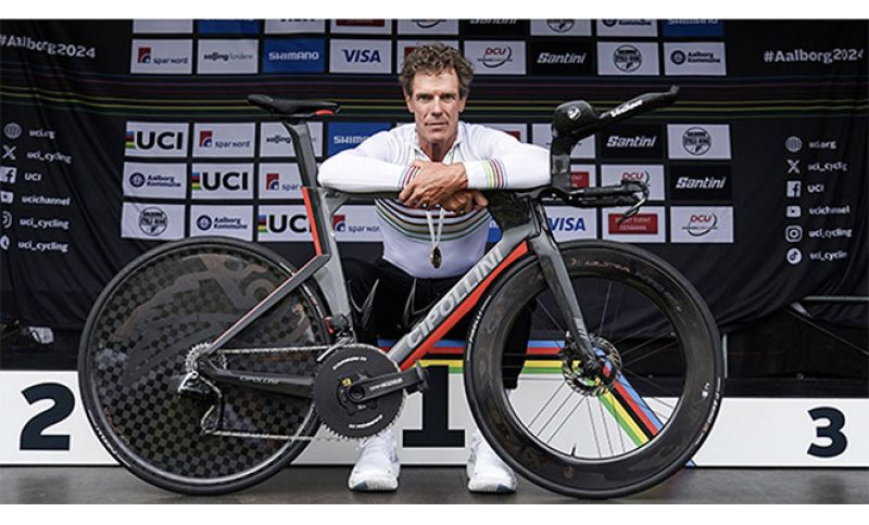 Le cinque strisce sulla maglia bianca sono più sottili, ma ci sono anche il podio e l’inno di Mameli. E, in abbondanza, gioia, soddisfazione, orgoglio. Forse, nascosta perché lui è un leone, anche un pizzico di emozione. Mario Cipollini è campione del mondo master M6 a cronometro. Ad Aalborg, in Danimarca, ha battuto il costaricano Robert Emil Nunes Ann e il britannico Richard Oakes. Cipo, che da martedì tornerà a essere protagonista sul nostro sito con “La zampata”, ha volato i 33 km in 41’46”, a oltre 47 di media.