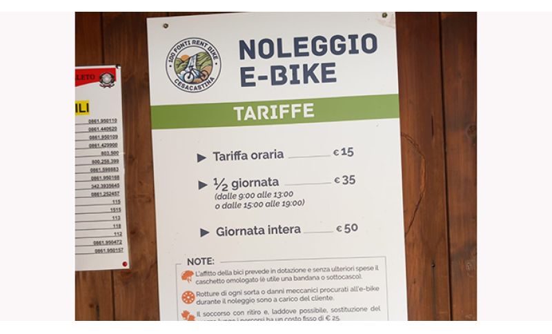 Alla capanna-rifugio-ristorante-chalet 100 Fonti Rent Bike c’è la possibilità, oltre ovviamente a noleggiare le biciclette, di chiedere e ottenere informazioni, acquistare guide e libri, ristorarsi e riposarsi, collegarsi con il wifi. Panorama, solitudine e silenzio sono una medicina naturale, da godere ma anche da rispettare, custodire e proteggere. Cominciando dalle piccole cose: i rifiuti si portano a casa e si differenziano nella raccolta.