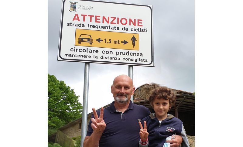 Marco Cavorso, che nel 2010 ha pianto la morte del figlio Tommaso e da allora si batte per strade più sicure per tutti, è il papà di questo seme che genererà un cambio culturale: «Con Paola Gianotti e Maurizio Fondriest (con lui nella foto sotto, ndr) abbiamo fondato l'associazione Io Rispetto il Ciclista nel 2017, anno in cui sono entrato a far parte dell'Associazione Corridori Ciclisti Professionisti Italiani come delegato per la sicurezza stradale per volontà del presidente di ACCPI Cristian Salvato e dell'allora consigliere Andrea Ferrigato, ma è già dal 2015 che pedaliamo in questa direzione. In questi anni abbiamo tappezzato l'Italia di cartelli e bussato alle porte di qualsiasi partito e ministro di turno, nel ricordo di Tommy e dei troppi ragazzi e ragazze vittime della violenza stradale».