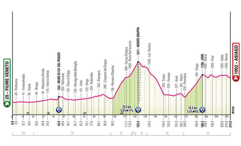 sabato 24 maggio 14ª tappa TREVISO - NOVA GORICA/GORIZIA km 186 - 1100 m dislivello - **