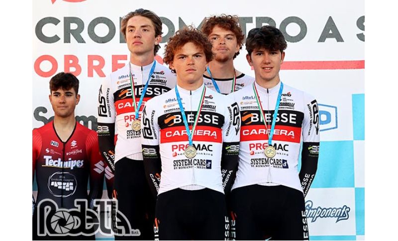 A firmare l'impresa sono stati Tommaso Alunni, Alessandro Cattani, Marco Martini e Leonardo Meccia, protagonisti di una prova impeccabile che a San Biagio di Callalta, in Veneto, li ha visti prevalere su avversari di altissimo livello. Grande soddisfazione per la squadra romagnola del dinamico presidente Gianni Carapia che esulta in quel di San Biagio di Callalta concludendo i 29,4 km del tracciato in 33'47".73 sette secondi in meno della Baharin Victorious Develepoment (Andreaus, Olivo, Capra, Borgo) che ferma il cronometro in 33'54".49. Terzo posto per la Biesse Carrera Premac di Milesi, Arrighetti e dei gemelli Gabriele e Tommaso Bessega a 33" di ritardo. Seguono Solme Olmo, Padovani Polo Cherry Bank e Trevigiani Energiapura Marchiol.