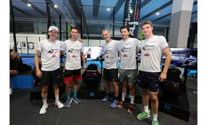È la seconda edizione del torneo di padel organizzato dall’agenzia dei fratelli Johnny e Alex Carera, un piccolo antipasto dell’ormai celeberrimo party per festeggiare tutti i successi della stagione. Vedendo la formula vincente dello scorso anno riproporre il padel è stato praticamente automatico, ma questa volta hanno deciso di aggiungere l’esperienza del simulatore di corsa per permettere a tutti quanti di calarsi nei panni dei piloti di formula uno. «Ormai facciamo il nostro party da oltre 20 anni e abbiamo sempre mille idee, poi l’anno scorso ci è venuto il pallino del padel e ci siamo subito accorti che ai corridori piaceva – ci hanno detto Johnny e Alex Carera- quella della virtual race è stata un po’ una scommessa e vedendo le facce di tutte le persone che ci sono qui abbiamo fatto veramente centro. »