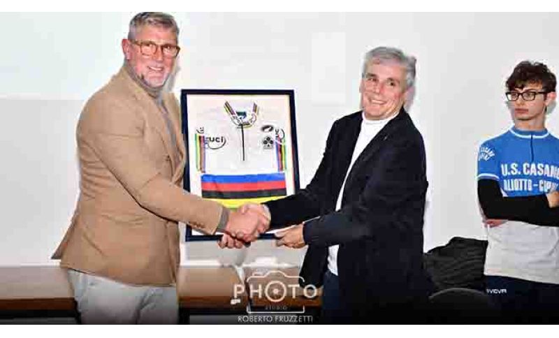 Prima della conclusione dell’incontro l’ex iridato Luca Colombo ha consegnato la maglia iridata al Comune di Luni nelle mani del vicesindaco e assessore allo sport Massimo Marcesini, mentre lo stesso Colombo per il Pedale Casalese Armofer e Christian Castagna per la parte del Casano hanno annunciato la costituzione di una squadra juniores plurima per il prossimo anno. Durante l’incontro ricordati anche tutti i dirigenti delle quattro società del territorio Lunense venuti meno negli anni e che hanno avuto una parte importante nello sviluppo e nella crescita delle società, mentre nella Sala Consiliare hanno trovato posto in bella mostra alcune bici di epoca grazie a Marco Vezzi della Poliartigiana di Arcola dove si trova un meraviglioso museo con un centinaio di biciclette. Una bici top gamma del momento firmata De Rosa è stata invece illustrata dall’ex corridore Fabrizio Convalle. Infine da ricordare gli apprezzati interventi di Marco Danese, Paolo Colò, Daniele Della Tommasina, Milco Musetti, Andrea Bertucci, Andrea Di Mitri, Norberto Nani. Un dialogo di sport da trasmettere ai giovani, come scuola, stile ed esperienza di vita, educazione e crescita personale, come sottolineato con forza da Gianni Bugno.