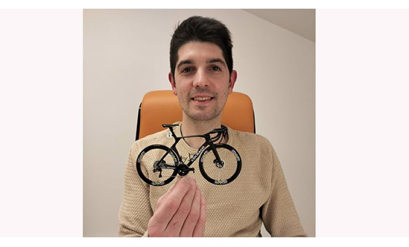 La bicicletta è arte, anche... in miniatura. Eddy Scquizzato - padovano di Piombino Dese di 32 anni, ex ciclista agonista fino alla categoria dilettanti, vincitore tra l'altro di un Oscar tuttoBICI nella categoria Esordienti - ha realizzato la Colnago Y1Rs di Tadej Pogačar in scala 1/10: è la bici con cui lo sloveno ha vinto i Campionati del mondo in Rwanda nel settembre 2025.