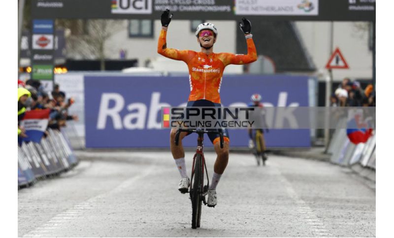 E' ancora l'Olanda a salire sul gradino più alto del podio ai campionati del mondo di Ciclocross. Dopo l'oro nella staffeffa mista, nella gara donne elite di Lucinda Brand e stamattina di Delano Heeren con gli juniores, è il turno di Leonie Bentveld indossare la maglia iridata grazie al successo nella gara riservata alle donne under 23. L'atleta di casa trionfa ad Hulst superando la slovacca Viktoria Chladonova e la francese Celia Gery. Buona la prestazione di Elisa Ferri, unica azzurra al via, che si piazza in decima posizione.