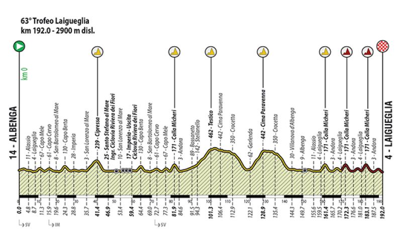 Il percorso di 192 km con 2.900 metri di dislivello presenta significative novità: per la prima volta la partenza avviene da Albenga (alle 11.25 da via Enrico d'Aste, adiacente a Piazza San Michele), nell'ottica di una collaborazione tra amministrazioni locali che fa sistema sul territorio. Tra le chicche tecniche, l'inserimento della Cipressa (5,6 km con pendenza media del 4% e picchi oltre il 7%), iconica salita della Milano-Sanremo, e l'ingresso del gruppo per 12,6 km sulla Ciclovia Riviera dei Fiori, infrastruttura simbolo della mobilità sostenibile ligure premiata con il Green Road Award 2025. Il finale si deciderà su Colla Micheri (2 km, pendenza media 8%), salita decisiva ripetuta quattro volte, di cui tre nel circuito finale, prima del traguardo in Corso Badarò a Laigueglia, un ritorno alla tradizione in riva al mare del bel borgo ligure.
