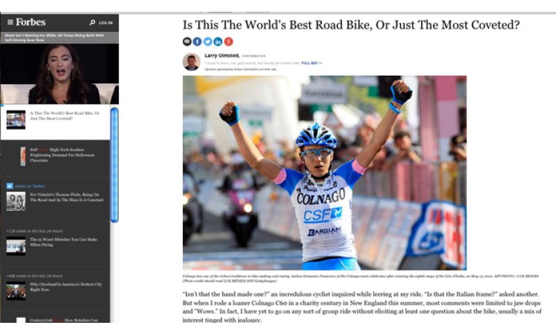 BICICLETTE | 29/10/2016 | 07:30 Colnago C60: la miglior bici del mondo o la più ambita? “È fatta a mano?" mi chiede un ciclista osservando la mia bici. “È un telaio italiano?" Chiede un altro. Mi è successo quando mi sono presentato con la mia Colnago C60 ad un evento di beneficienza nel New England, Usa, questa estate. Quando passavo davanti agli altri ciclisti in sella alla mia Colnago la maggior parte dei commenti era "Wows".
