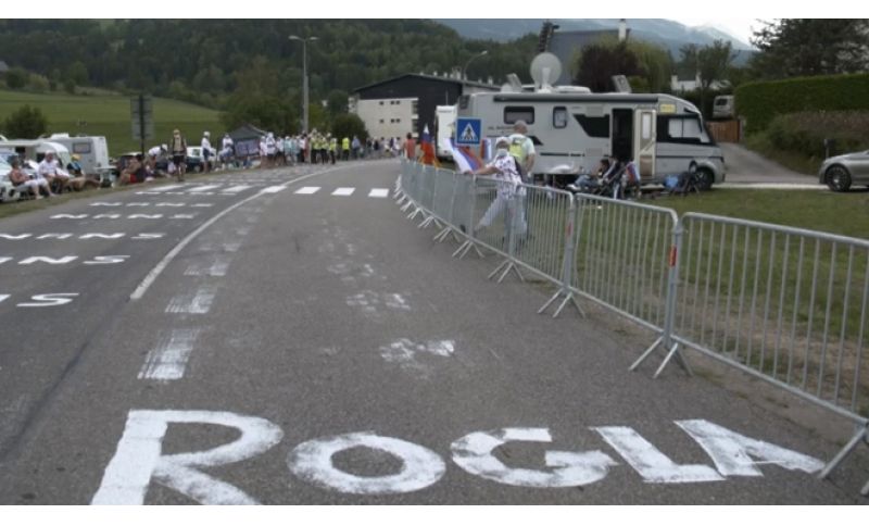Si chiama Lora Klinc ed è la compagna di Primoz Roglic, il campione sloveno padrone della maglia gialla. Lora viaggia in camper, con il figlioletto Lev di un anno e il fratello. Viaggiano sulle strade del Tour, indossando una maglia nera con disegnata una ruota di una bici con due ali e il nome Rogla. È la maglia che Lora ha fatto fare per il compagno Primoz, che segue a distanza, dietro le transenne, dove urla e incita il suo campione.