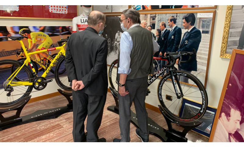 Guarda con attenzione e si fa raccontare da due eccellenze del nostro sport, Ernesto Colnago e Beppe Saronni. La bici del mondiale di Goodwood, quella del record dell’ora di Eddy Merckx, delle cinque Roubaix targate Mapei, quella d’oro regalata a Giovanni Paolo II e poi qualche anno fa riacquistata … qui c’è la storia. «Vengo da Jerago (è nato a Gallarate, nel 1951, ndr), terra di Alfredo Binda. Avevo un nonno, Enrico, che in bicicletta aveva corso e qualche medaglia l’ha anche vinta – racconta -, ma come ho detto io ho sempre usato la bicicletta per spostarmi, ma anche per contemplare le bellezze del nostro mondo. Ma del ciclismo apprezzo il sacrificio e la costanza, e che bello quel gesto che i corridori fanno quando alzano le braccia al cielo, come a ringraziare il nostro Signore».