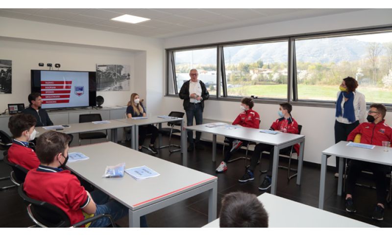 Grande soddisfazione per i ragazzi, alcuni dei quali studenti di meccanica, che hanno potuto porre molte domande sia ai dipendenti e al proprietario dell’Erba Spa, ma anche ai due testimoni d’eccezione per il progetto. Eddy Mazzoleni, ciclista professionista dal 1996 al 2007 ha accompagnato i giovani corridori per tutta la visita spiegando poi le finalità del progetto. «Per andare in bici, ma anche per tutta la vita è necessario avere disciplina, fare un lavoro nel miglior modo possibile e migliorarsi sempre. La disciplina è fondamentale, alla fine è quella il motore di tutto. Non dovete mai dimenticare quello che state imparando in questi anni con lo sport, vi sarà utile nella vita» ha raccontato Mazzoleni ai ragazzi.