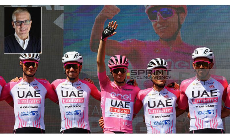 UAE TEAM EMIRATES. 10 e lode. Cosa potevano fare di più? Forse aspettare gli altri. Invece hanno fatto per tre settimane corsa d’avanguardia, con un maratoneta incontenibile e felice, che ha dato spettacolo distribuendo gesti di sublime bellezza, sia in bicicletta che giù. Seguito e acclamato da tutti ogni mattina, non si è mai sottratto al bagno di folla, distribuendo cappellini, autografi e selfie soprattutto ai bambini. Imparassero gli altri non tanto a stargli a ruota, ma a comportarsi con gli aficionados, che sono il vero motivo della loro esistenza. Ma le prime a capirlo dovrebbero essere le squadre, che pagano profumatamente i loro testimonial, che poi faticano a testimoniare. Detto questo, 17 piazzamenti nei dieci, sei vittorie di tappa con “Pogi”, distacchi da clessidra, la maglia di miglior scalatore e rosa di migliore del Giro. I suoi compagni di squadra fanno quello che chiede venga fatto, i suoi tecnici cercano di metterlo nelle condizioni migliori per esprimere il proprio talento, ne escono tutti alla grande anche perché disponevano di un gigante.