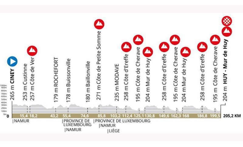 Sono 205,2 i chilometri da percorrere e rispetto alle ultime due edizioni, gli organizzatori hanno deciso di apportare alcune modifiche, che in ogni caso, non andranno ad alterare il fascino di questa corsa. Gli uomini non partono più da Charleroi, ma da Ciney, vicino a Namur e dopo appena dieci chilometri, affronteranno la prima salita della giornata, la Côte de Ver (1,4 km al 4,6%). Più avanti ci saranno alcune salite non classificate e poi arriverà la Côte de Petite Somme (1,2 km all'8,8%).