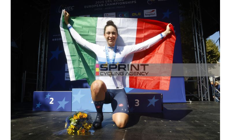 È una Federica Venturelli in formato super quella che si è laureata campionessa europea a cronometro tra le U23. L'atleta cremonese, nei 24 km di percorso della rassegna continentale nella Drôme e Ardèche, ha disintegrato la concorrenza, non lasciando scampo a nessuna avversaria. Venturelli, bronzo di specialità a Kigali, ha fermato il cronometro in 34'17", volando alla media di 42 km/h - nonostante la salita finale verso Étoile-sur-Rhône - e anticipando di 48" la campionessa uscente Anniina Ahtosalo (Finlandia) e di 51" Luca Vierstraete (Belgio).
