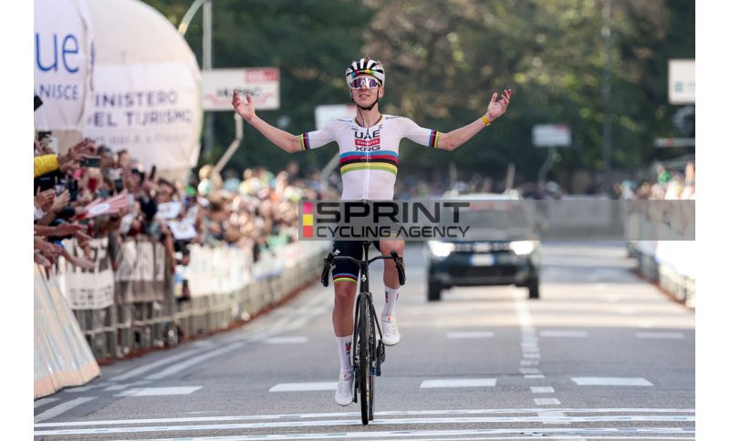 La Tre Valli Varesine numero 104 è di Tadej Pogačar (UAE Team Emirates – XRG). Il campione del mondo e d’Europa, già vincitore di questa competizione nel 2022, ha tagliato il traguardo di Via Sacco a Varese a braccia alzate dopo una fuga solitaria di 22 chilometri in cui ha “inflitto” 45" di distacco al plotone regolato da