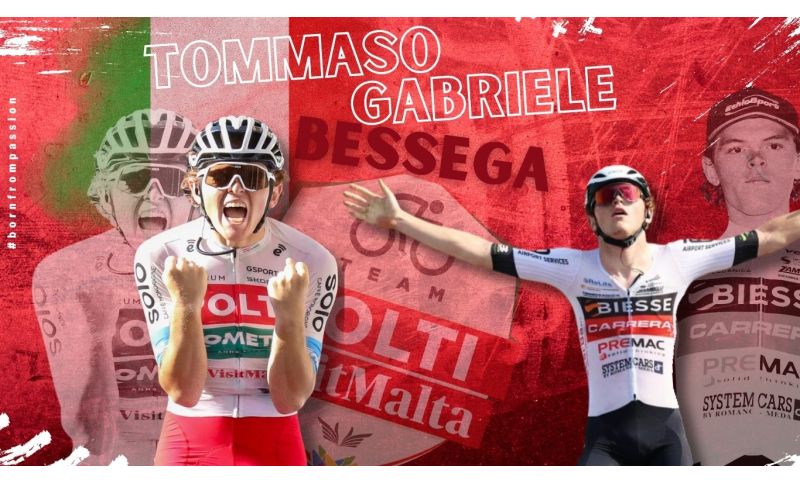 Potrebbe essere la biografia ciclistica di un atleta, invece è la bio di due atleti: i gemelli di 21 anni Tommaso e Gabriele Bessega. Uguali nell’aspetto e nel percorso sportivo, molto simili sia nelle caratteristiche di corridori potenti sia nei risultati: per Tommaso 5 vittorie in totale nelle tre annate da dilettante, 3 i successi di Gabriele; ed entrambi parteciparono alla vittoriosa cronosquadre della Vuelta a Madrid 2024. Dopo Benito, Giuliano, Crozzolo e Pesenti, loro costituiscono il quinto e il sesto nuovo acquisto del Team Polti VisitMalta.