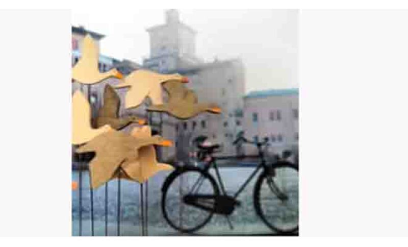 Cigolano e fischiettano. Cinguettano e spernacchiano. Trattengono il respiro e musicano la strada. Percorrono e scorrono, accorrono e incorrono. S’insinuano e s’inoltrano, s’incamminano e s’ingrassano, si lubrificano e addirittura si piegano. Si attaccano (alle rastrelliere, ma non al tram) e si staccano (dal gruppo e anche dal chiodo). Si fanno in quattro, quattrocento, quattromila, quarantamila, quante saranno le biciclette di Ferrara? Si arrampicano perfino sulle scale e si appendono addirittura sulle pareti.