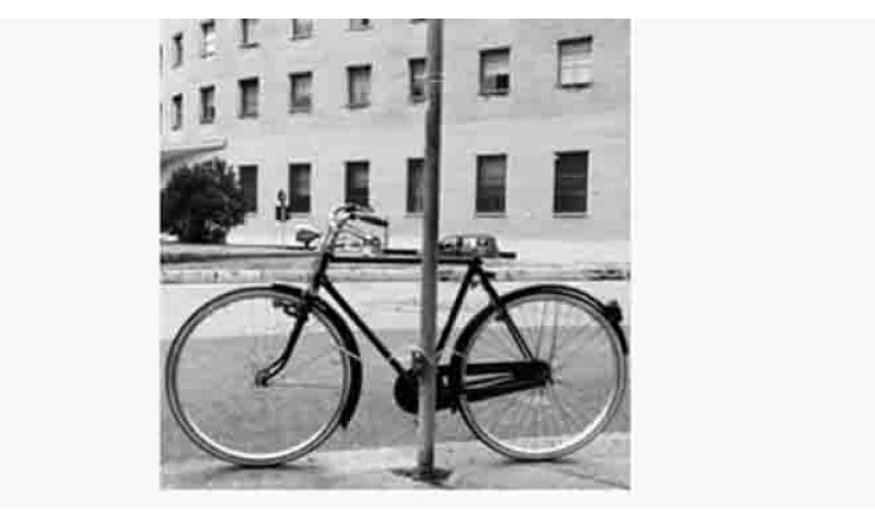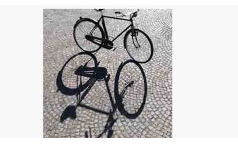 Così non c’è da stupirsi se alle pareti dell’Hotel Carlton di Ferrara, in piazza Sacrati lungo via Garibaldi, ci sono le biciclette. Non quelle in acciaio e carbonio, ma quelle in carta, non quelle verniciate flu, ma quelle stampate in bianco e nero e a colori, non quelle da prete o da bambino, ma quelle anonime e disabitate, non quelle da gita o da corsa, ma quelle delle fotografie di Enrico De Lazzaro. Fotografie quadrate, più grandi di un long playing, in cui le biciclette campano davanti al Duomo, abitano di fronte al Castello, inspirano in un parco, presenziano in un vicolo, si sposano a un palo o posano al sole godendosi la propria ombra.