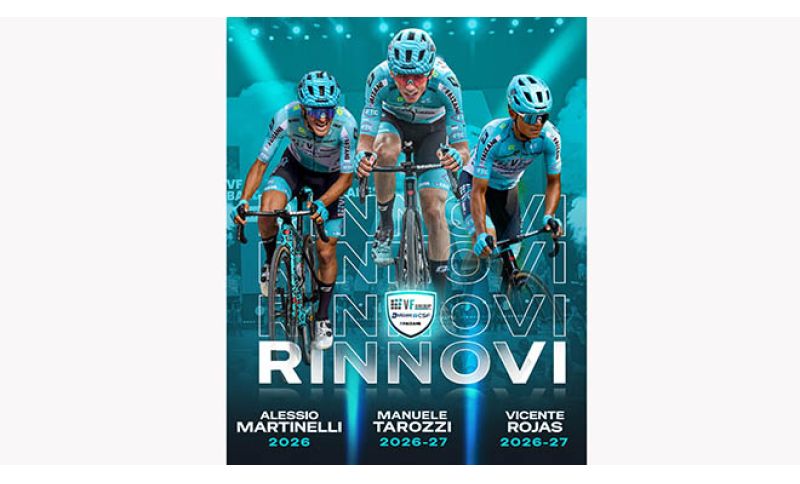 La VF Group Bardiani-CSF Faizanè comunica il rinnovo biennale, fino al 2027, di Manuele Tarozzi e Vicente Rojas, e il rinnovo annuale, per il 2026, di Alessio Martinelli.