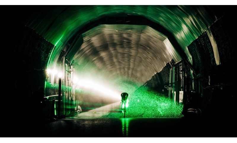 Il test ha richiesto la massima concentrazione: oltre 100 sedute esattamente alla stessa velocità, posizione e traiettoria, ogni volta attraverso una cortina verde di bolle di elio e luce laser. Il Catesby Tunnel, con la sua temperatura costante e l'assenza di influenze esterne, offre l'ambiente perfetto per questo tipo di esperimento.