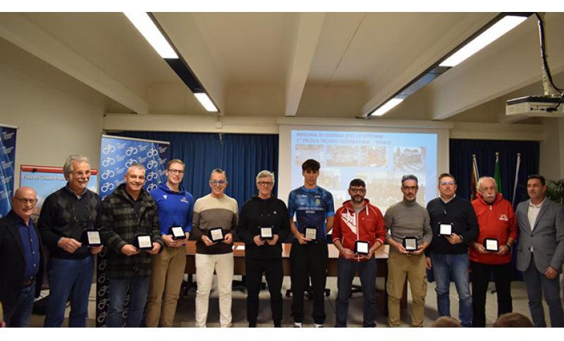 E’ toccato poi ai Campioni Provinciali 2025 ricevere i Premi - Per il settore Strada è andato allo Junior, Marco Giandoso (Ciclistica Villadose Angelo Gomme); per il Fuoristrada-Mtb allo Junior, Mirco Selvaggio (San Bortolo); al Master 1, Davide Boscolo (Adria Bike); al Master 2, Marco Veronese (Red Bike Team); al Master 3, Alessandro Bergamasco (id)vincitore anche del Trofeo Serenissima; al Master 4, Simone Pianalto (Adria Bike); al Master 6, Andrea Santon Rallo (Red Bike Team); al Master Elite, Andrea Ferrari (id).