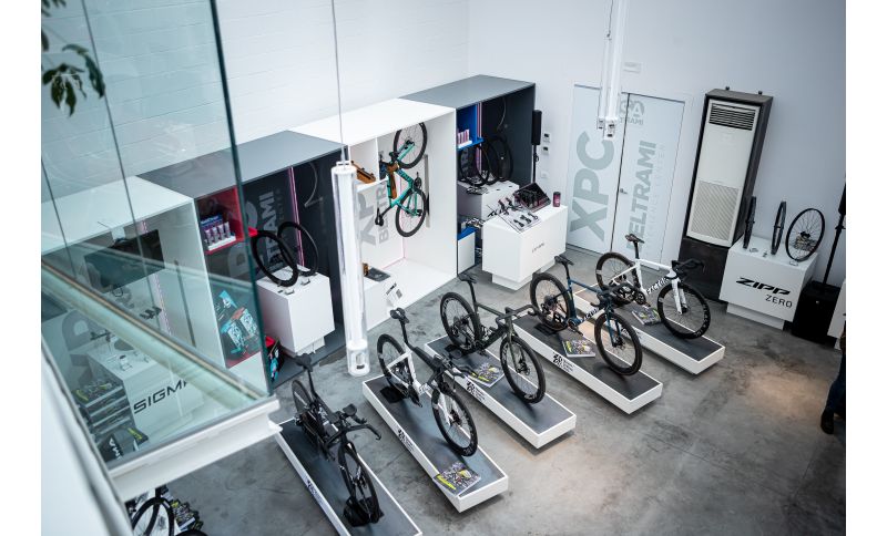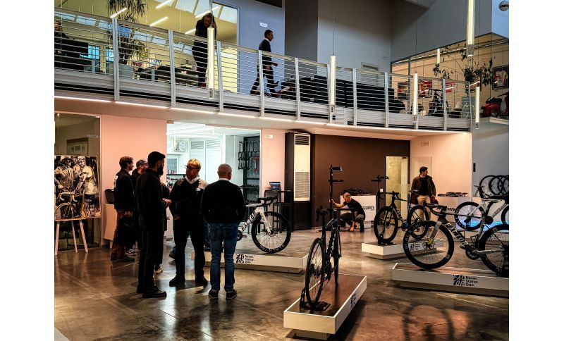 Nel frattempo, nell'androne principale della sede societaria si svolgevano momenti d'intrattenimento come la pittura-collage in diretta dell'ex corridore e oggi artista Miguel Soro, il social mirror dove potersi scattare una foto ricordo, la macchina pesca-palline stile luna park per aggiudicarsi premi di marca. All'esterno, sotto un cielo ideale per andare in bici nel freddo novembrino, i presenti hanno potuto provare i modelli strada e gravel di Factor Bikes, nuovo brand di punta di Beltrami TSA dopo l'era Argon 18, dopodiché il direttore sportivo del team Under 23 Beltrami La Risorsa Umana, Alioscia Facchini, ha guidato i suoi ragazzi e un gruppetto di appassionati d'ogni età in una pedalata nei dintorni reggiani. Nel pomeriggio, una bella mezz'ora di gimkana per le squadre Giovanissimi della zona.