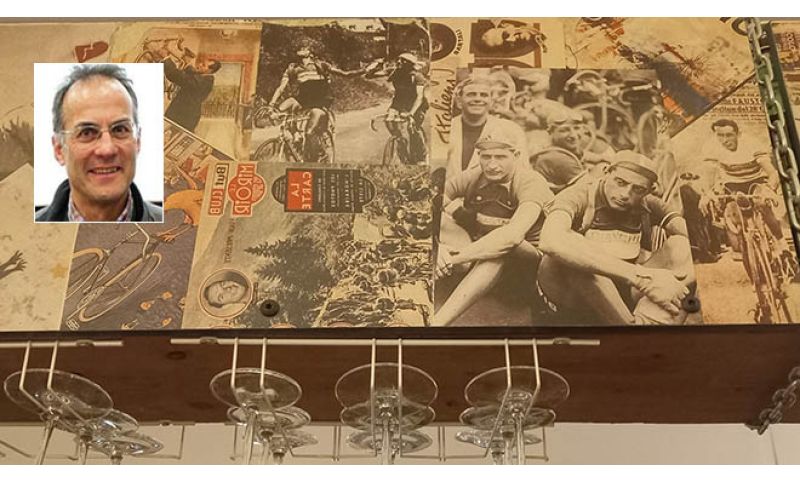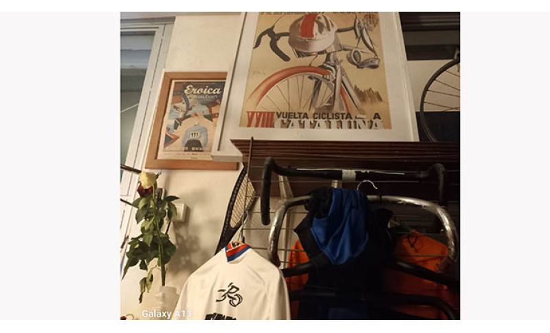 A Fausto Coppi, il Bar Coppi, sarebbe piaciuto. E forse si sarebbe commosso a vedere la sua immagine stampata sopra il bar – e ovviamente c’è anche Gino Bartali -, il marchio della sua Bianchi in biciclette esposte o riparate, il suo cognome dappertutto, perfino “Il Campionissimo” come nome scelto per la srl.
