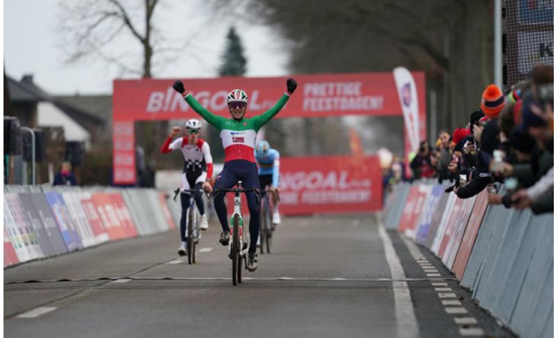 Super Italia nella quarta prova della Coppa del Mondo di Ciclocross juniores che si è svolta a Dendermonde in Belgio. Gli azzurri dominano la scena e conquistano il successo con il campione italiano Patrik Pezzo Rosola, il primo in Coppa per il figlio d'arte dopo la terza posizione di Flamanville, la quarta di Tabor e la sesta di Koksijde. Il campione europeo e leader di Coppa Filippo Grigolini chiude al secondo posto confermando la sua solidità e continuità, al sesto Francesco Dell'Olio e al decimo Tommaso Cingolani a conferma di una giornata spettacolare per i colori della nostra Nazionale guidata da Daniele Pontoni. Grand'Italia dunque con Pezzo Rosola e Grigolini che stanno vivendo una stagione da protagonisti assoluti.