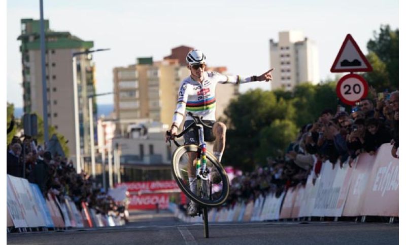 La voglia di vincere sembra appartenere ormai a Mathieu Van der Poel, che anche a Benidorm, in Costa Blanca, trionfa nella decima prova della Coppa del Mondo di ciclocross élite. In terra spagnola si ripete un copione già noto: l’iridato della Alpecin–Premier Tech prende il comando al secondo giro e non lo lascia più, imponendo ancora una volta la sua disarmante superiorità. Sotto un sole primaverile di Benidorm l'asso olandese ottiene la decima affermazione consecutiva, sesta in Coppa che gli prmette di consolidare il suo primato nella speciale classifica UCI. Van Der Poel anticipa Thibau Nys e l'idolo locale lo spagnolo Orts Lloret.
