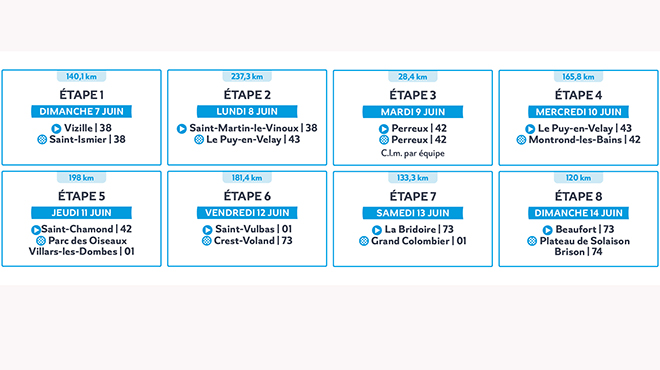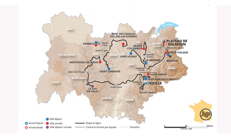 L'edizione 2026 scatterà da Vizille domenica 7 giugno per concluderso una settimana più tardi al Plateau de Solaison. La varietà di terreni e profili promette una corsa emozionante nelle otto tappe, con una partenza grintosa dall'Isère e un finale in grande stile sulle cime dell'Ain e della Savoia.