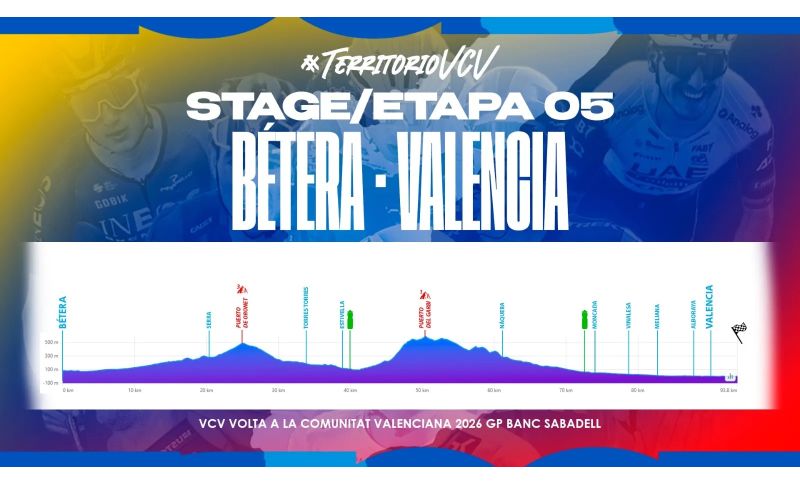 L’ultima frazione, infatti, non appare abbastanza dura per sperare di fare grosse differenze. Sarà cortissima, solo 95 km, con partenza da Bétera e arrivo alla marina di Valencia: a 45 km dall’arrivo andrà superato il Port de Garbí (5,1 km al 7,1%), ultima occasione per gli uomini di classifica per provare a ribaltare le sorti della corsa.