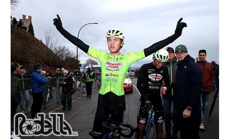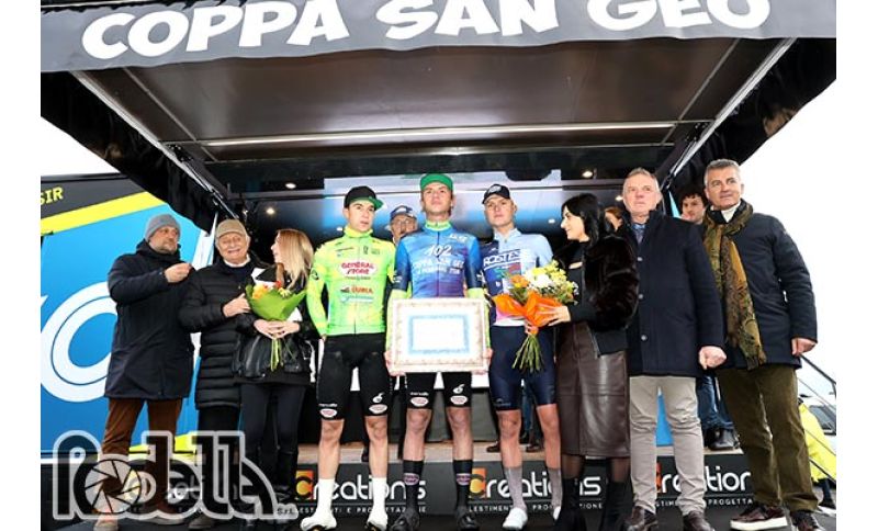 Volata vincente di Nicolò Arrighetti nella 102sima edizione della Coppa San Geo che si è svolta sotto la pioggia da Ponte San Marco a Padenghe sul Garda nel Bresciano. Il bergamasco di Bossico, classe 2004 all'esordio con la maglia della General Store Essegibi F.lli Curia, allo sprint ha regolato un gruppetto di una ventina di atleti anticipando il compagno di squadra Bortoluzzi e Fede della Ciclistica Rostese.